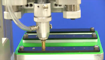 Es werden 2 Achsen hinzugefügt, um sowohl den Dosiernadelwinkel als auch den Werkstückwinkel zu verändern. Dadurch werden die Winkel für das Auftragen auf die äußere Randfläche eines in ein rohrförmiges Werkstück geschnittenen Lochs festgelegt.