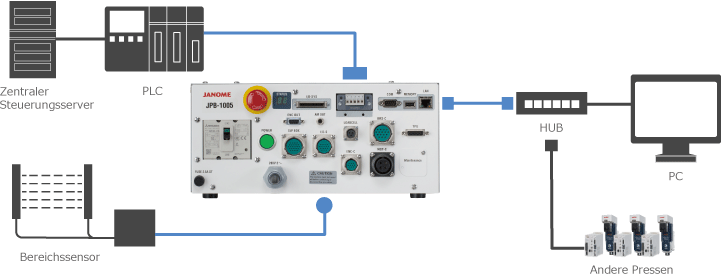 Die Servopressen sind mit verschiedenen Signalen ausgestattet, um sie einfach mit Peripheriegeräten verbinden zu können.
